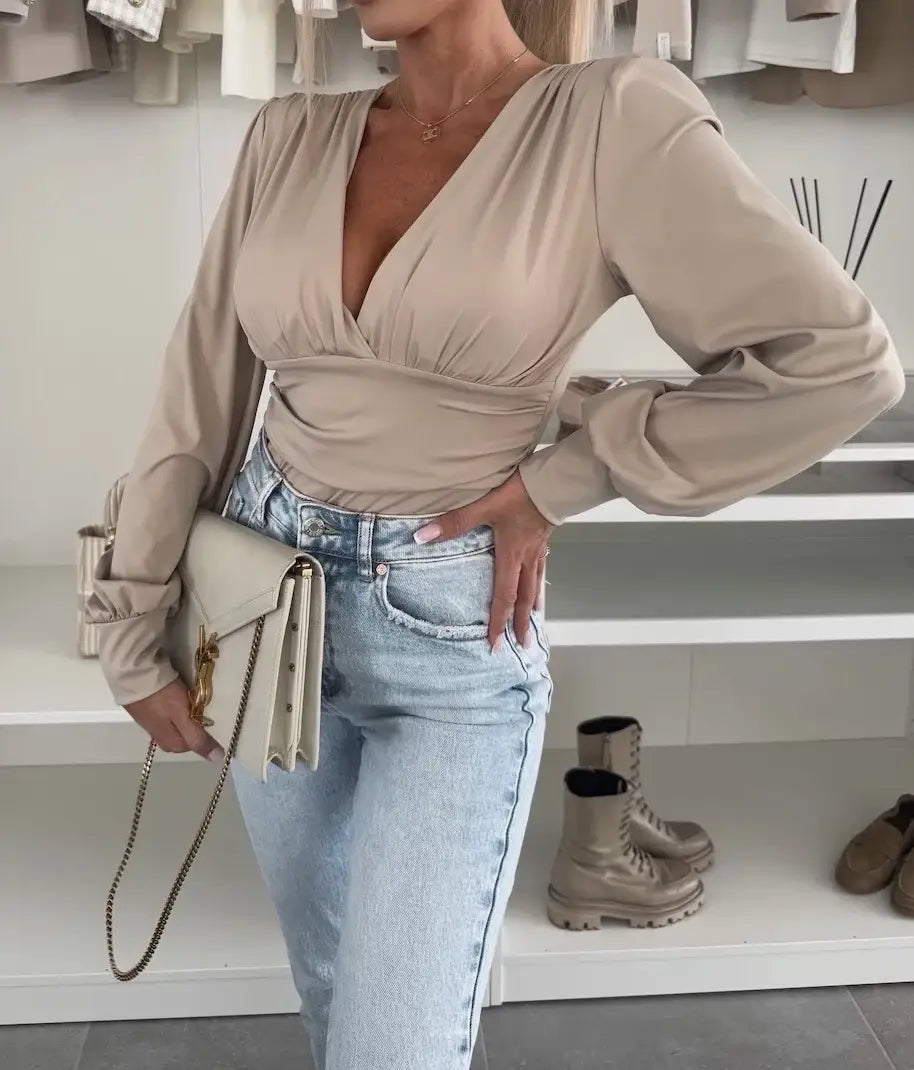 Top body en manche longue. Le haut est composé de 3 tailles : S, M, L.